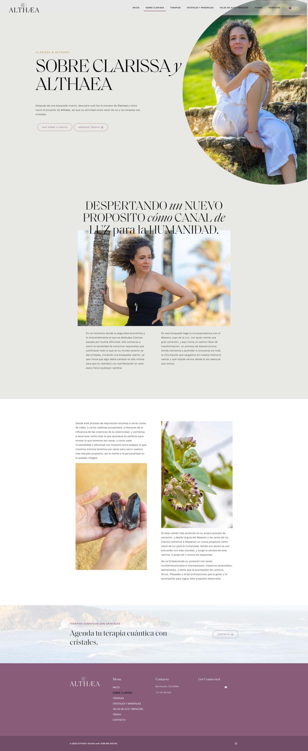Le site web devait refléter la vision et la personnalité de Clarissa à travers le choix des couleurs et des polices, avec un design moderne, minimaliste et aérien.